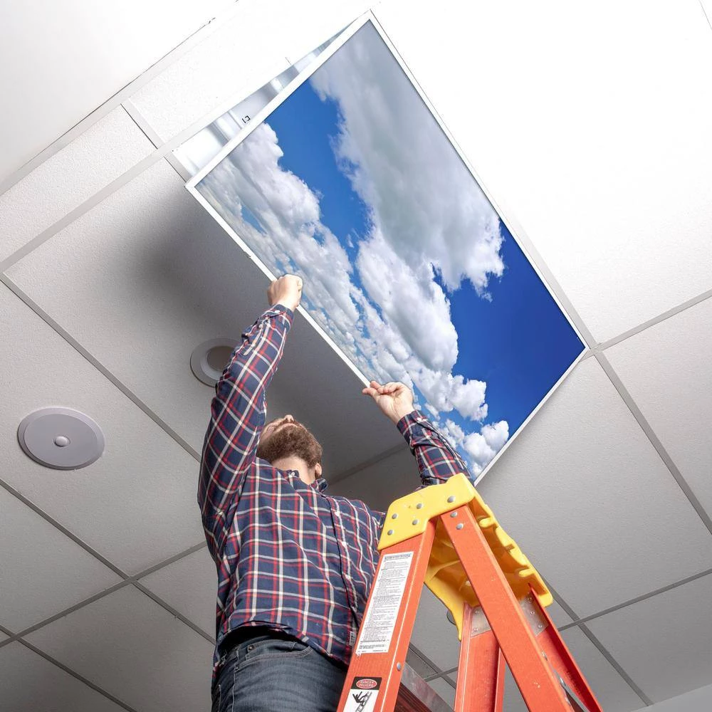 Octo Lights – Fluorescent Light Covers – Cloud Series: Reduce harsh fluorescent glares and escape the indoors without leaving your desk. Whether at home, in school, or at the office, you can liven up any fluorescent lighting system with the Octo Lights’ cloud design light diffuser panels to make every day feel like you’re outside on a lovely, clear day. Made with top quality materials and featuring high-resolution photo prints the Octo Lights cloudscape light covers are designed to enhance any space you choose to install. By removing the harsh glares from the fluorescent lights, your living and workspace will be transformed into one of calm and serenity. Octo Lights are great for: Home, Classrooms, Offices, Workshops, Hospitals and more. As leaders of the lighting industry, we take pride in offering high quality cloud fluorescent light covers that are easy on the pocket. Our experts use high-resolution images to develop flawless sky ceiling tiles. You can rest assured that you’ll be paying for top-notch light products in the market.