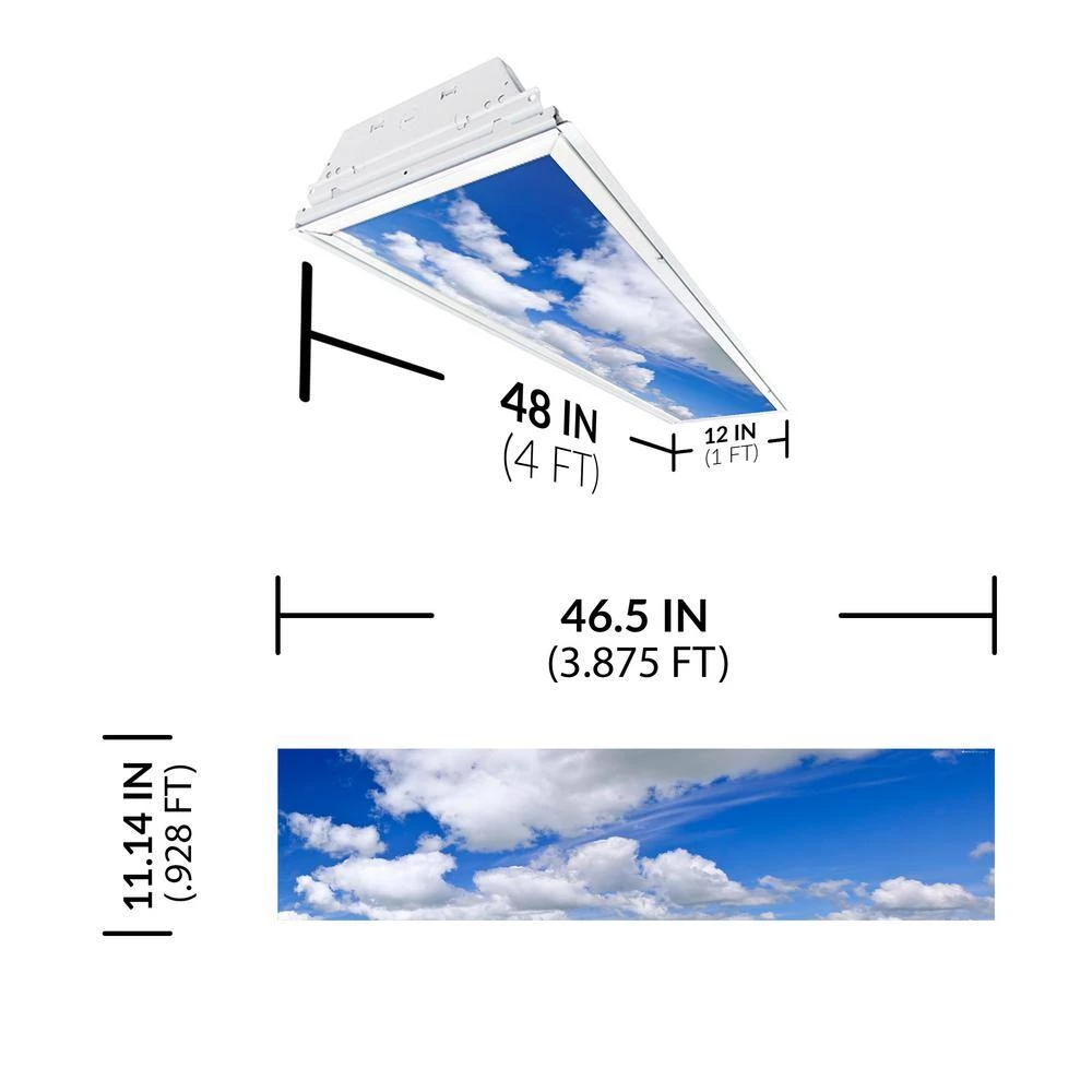 • ?UNIVERSAL 1×4 FIT? Octo Lights’ decorative cloud light covers seamlessly fit any standard 1×4 fluorescent ceiling light. The actual size of each cover measures, 11.187″ x 46.5″. ??
