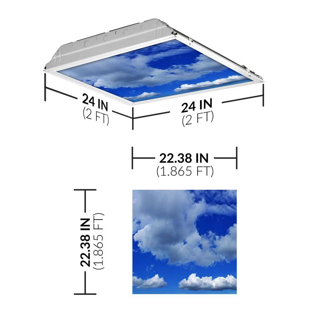 - ?UNIVERSAL 2×2 FIT? Octo Lights’ decorative cloud light covers seamlessly fit any standard 2×2 fluorescent ceiling light. The actual size of each cover measures, 22.38″ x 22.38″. ??