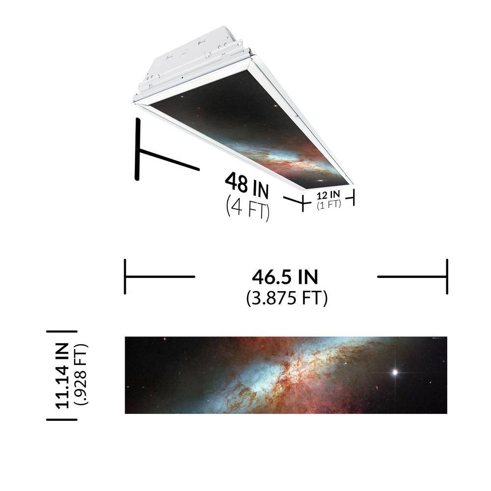 • ?UNIVERSAL 1×4 FIT? Octo Lights’ decorative astronomy light covers seamlessly fit any standard 1×4 fluorescent ceiling diffuser. The actual size of each panel measures, 11.187″ x 46.5″