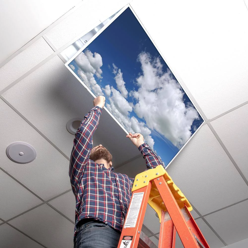 Octo Lights – Fluorescent Light Covers – Cloud Series: Reduce harsh fluorescent glares and escape the indoors without leaving your desk. Whether at home, in school, or at the office, you can liven up any fluorescent lighting system with the Octo Lights’ cloud design light diffuser panels to make every day feel like you’re outside on a lovely, clear day. Made with top quality materials and featuring high-resolution photo prints the Octo Lights cloudscape light covers are designed to enhance any space you choose to install. By removing the harsh glares from the fluorescent lights, your living and workspace will be transformed into one of calm and serenity. Octo Lights are great for: Home, Classrooms, Offices, Workshops, Hospitals and more. As leaders of the lighting industry, we take pride in offering high quality cloud fluorescent light covers that are easy on the pocket. Our experts use high-resolution images to develop flawless sky ceiling tiles. You can rest assured that you’ll be paying for top-notch light products in the market.