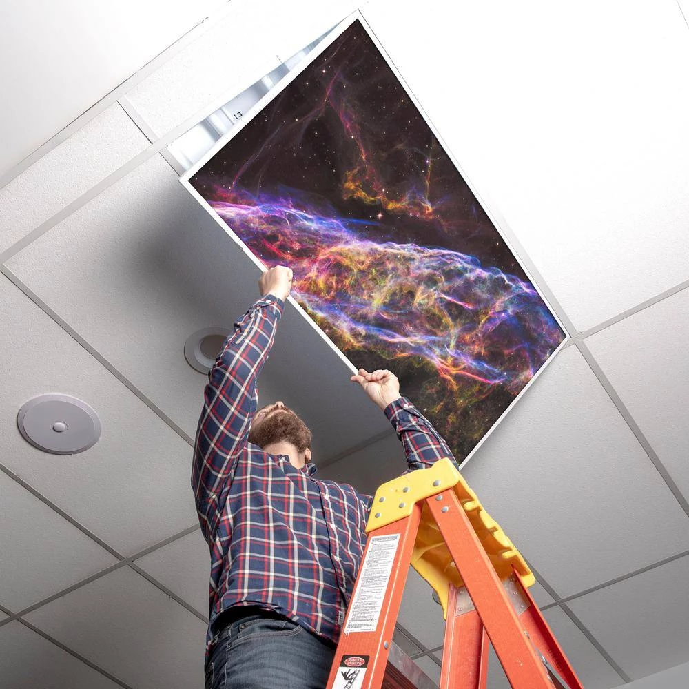 OCTO LIGHTS- Fluorescent Light Covers: Reduce harsh fluorescent glares and escape the indoors without leaving your desk or cubicle. Whether at home, in school or at the office, liven up any fluorescent lighting system with the OCTO LIGHTS’ astronomy design light filters to make every day feel like you’re stargazing or sojourning through the stars. Made with top quality materials and featuring high-resolution photo prints the OCTO LIGHTS astronomy light covers are designed to enhance any space you choose to install. By removing the harsh glares from the fluorescent lights, your living and workspace will be transformed into 1 of other-worldly serenity. OCTO LIGHTS Features and Benefits: Lightweight and Flexible, Eco-Friendly, Self-Extinguishing Material, Easy Installation and Exchange, UL Certified, Safe for All Environments, Available in Backlit Film for Traditional Fluorescent Lighting Systems. Perfect For: Homes, Classrooms, Offices, Workshops, Hospitals and More. About OCTO LIGHTS: As leaders of the lighting industry, we take pride in offering high quality astronomy fluorescent light covers that are easy on the pocket. Our experts use high-resolution images to develop flawless interstellar ceiling tiles. You can rest assured that you’ll be paying for top-notch light products in the market.