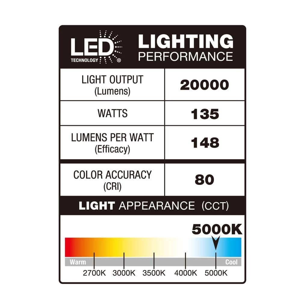 - Uses only 135-watt to produce 20,000 Lumens (equivalent to 400-Watt HID bulb)