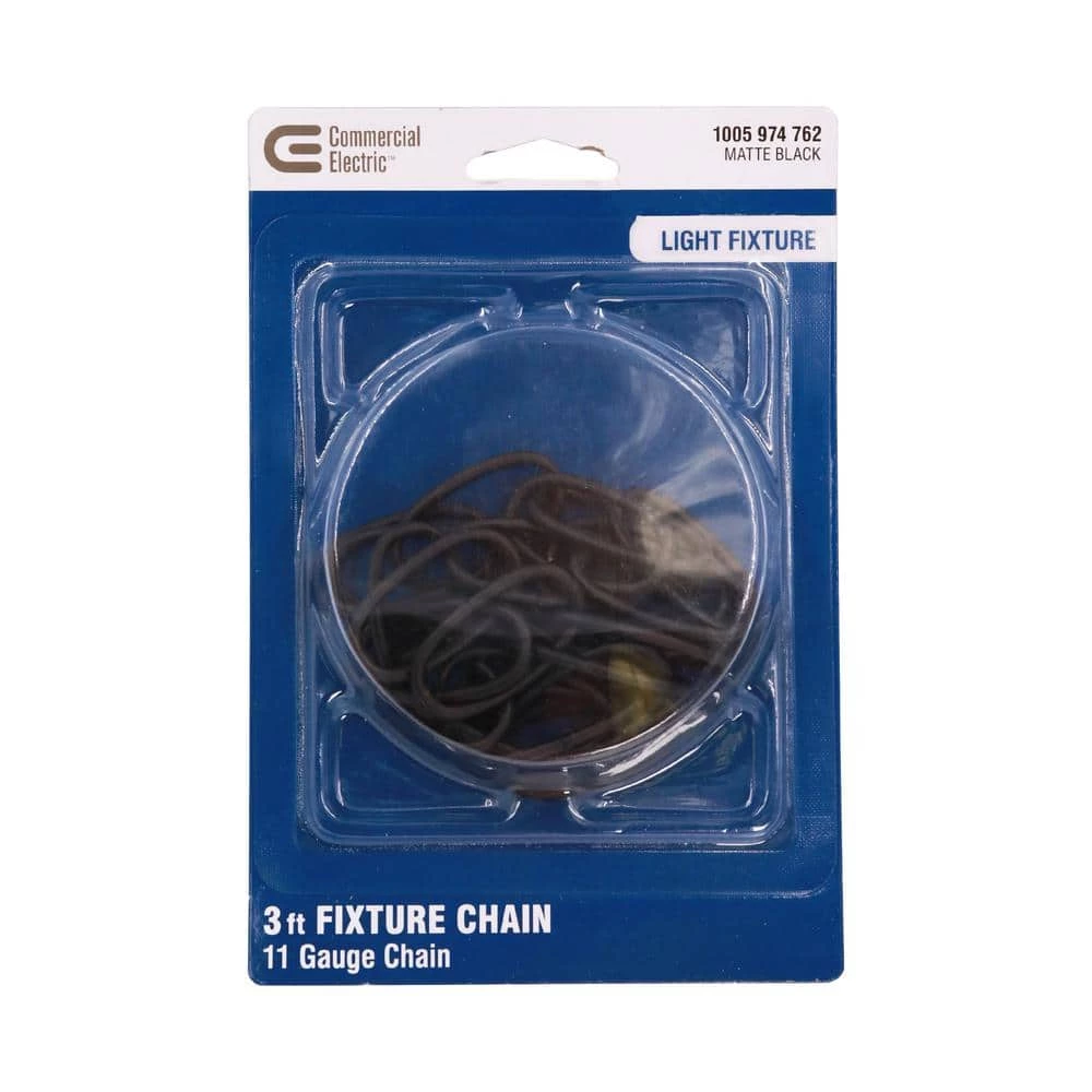 The 3 ft. Black Finish Lighting Fixture Chain offers a reliable solution for hanging a light fixture. with a timeless Black finish, this 11-Gauge fixture chain complements your decor while letting you suspend a chandelier or other light fixture almost anywhere in the home. This hardware is also ideal for replacing a worn or broken chain or extending a functioning 1. The 3 ft. fixture chain supports up to 35 lbs. To hang a light fixture, simply loop the top of the chain around a swag hook, loop or support beam and connect the bottom of the chain to the fixture.