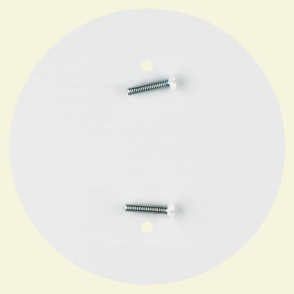 Elegantly conceal an unsightly outlet box with this 4-3/4 in. White Outlet Concealer. The flat white plate matches most surroundings and can be covered with paint or wallpaper. This concealer is 4-3/4 in. Dia and mounts on 3 in. and 4 in. outlet boxes. Its holes are spaced 2-3/4 in. apart. The kit includes two 8-32 in. x 3/4 in. white head screws for easy installation.
