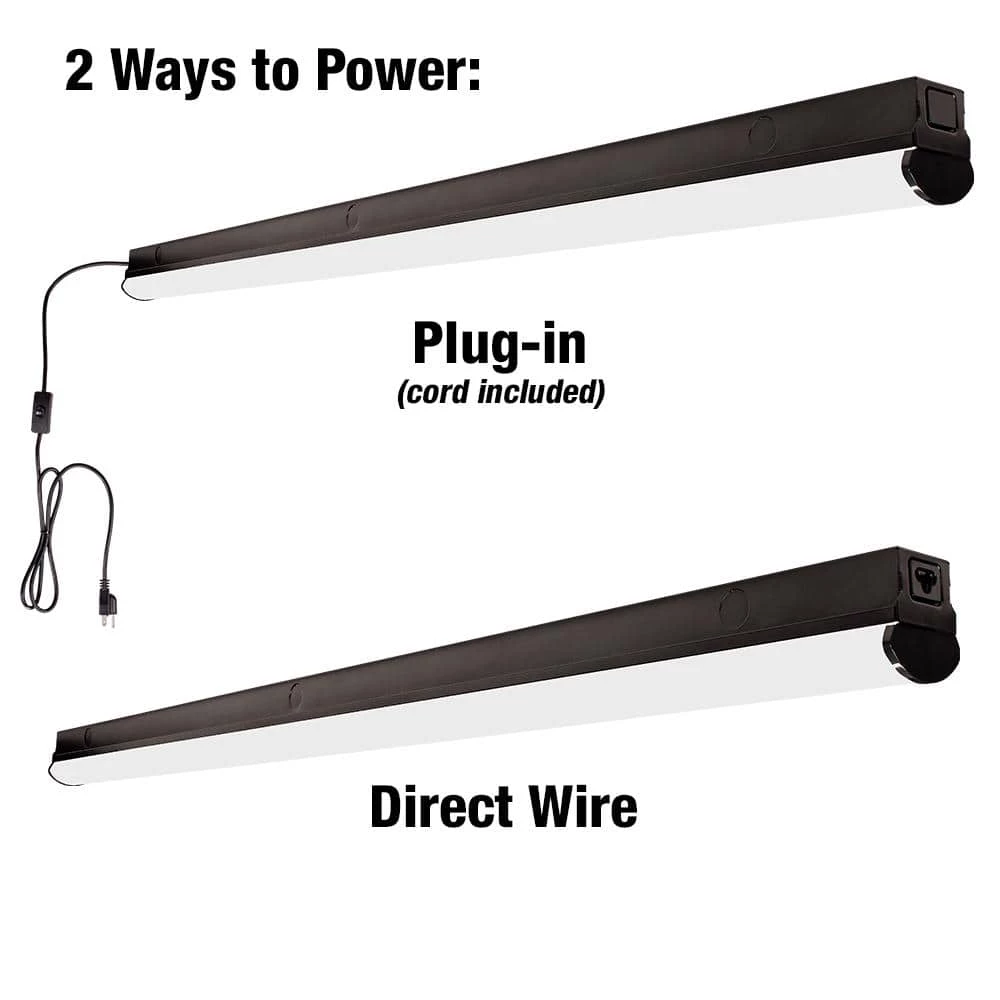 Commercial Electric 4ft. LED Strip Light with direct wire or plug-in connection is designed to replace an outdated fluorescent bulb into a highly energy saving LED light fixture. With your choice between two power sources: direct wire or plug-in; this fixture is a versatile light for home, office or business. For a larger footprint, it is linkable up to 300-Watt maximum wattage with 2ft. or 4ft. strip lights. Packaging includes 14in. linking cord, end-to-end connector and 5ft. power cord. It provides crystal-clear illumination with no yellowing or discoloration or dark spots over time. This strip light is long lasting and maintenance free with no bulbs to replace. Ideal for under cabinets, pantry, desk hutch, kitchen desk, closet, work bench, tool bench or storage room.