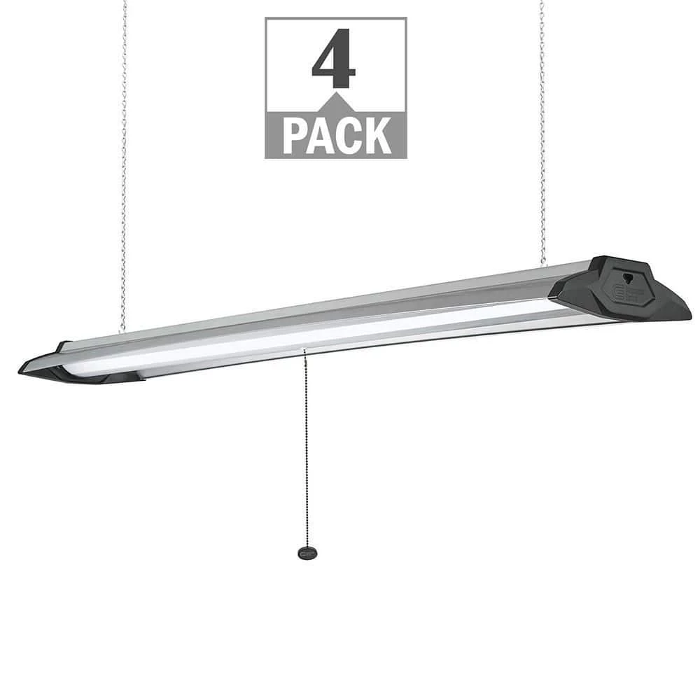 Commercial Electric 4 ft. High Output LED Linkable Strip Light with Pull Chain is designed to replace outdated fluorescent lights with a crystal-clear energy-efficient integrated LED fixture. For ease of installation, use the 5 ft. Power cord with 3-prong plug into wall or ceiling outlet and is linkable up to five 4 ft. units (hardware included). This shop light provides crisp and vibrant illumination with no yellow discoloration or dark spots over time. With its superior long-lasting light engine, our shop light is maintenance free with no bulbs required. Great for garage, basement, workshop, storage room, utility room or craft room.
