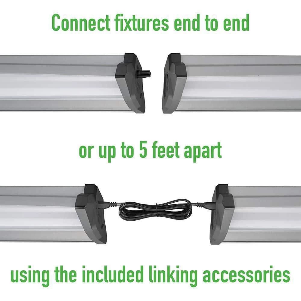 - Multiple light fixtures can be connected, up to a maximum of five 4 ft. shop lights or 300 total watts, only the first light fixture needs to be plugged into an electrical outlet