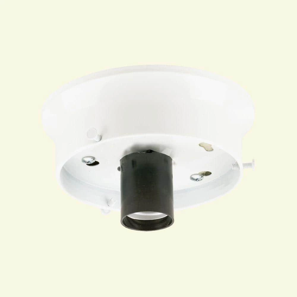 Brighten your home with a new light fixture with the 3-1/4 in. Glass Shade Holder Kit with ON/OFF Pull Chain Switch. It features an versatile white finish and mounts flush against the ceiling. Includes an ON/OFF pull chain switch, making it perfect for areas without a wall switch nearby. This quality glass shade holder uses 1 medium-base light bulb, 60-Watt maximum. UL Listed for safety, the kit has all the hardware you need and includes a crossbar, 2 mounting screws, 3 fitter screws and a fiberglass insulator. To attach a glass shade, simply tighten the fitter screws.