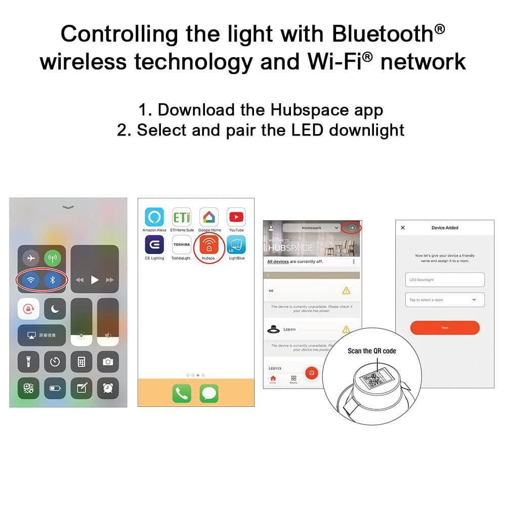 Commercial Electric 6in. SMART LED Recessed Light Trim with Hubspace App is an innovative and entertaining way to illuminate your space. Create subdued romantic lighting or express your dramatic flair. Perfect for holidays, celebrations or whatever your current mood; turn lights down low to a cool blue hue or having a party; turn lights to a popping red, orange or yellow. Set up and manage your device with the Hubspace App which is compatible with Google Home and Amazon Alexa; no HUB required. Now you are ready to create your own unique colorful lighting ambiance. Choose shade of white (2200K-6500K) or select from a full color spectrum. You can even group multiple lights together to control them from up to 30 ft. in your home. For even more convenience, you can set up for voice activation. Ideal for home, office, entertainment areas, restaurant, retail, boutique and much more.