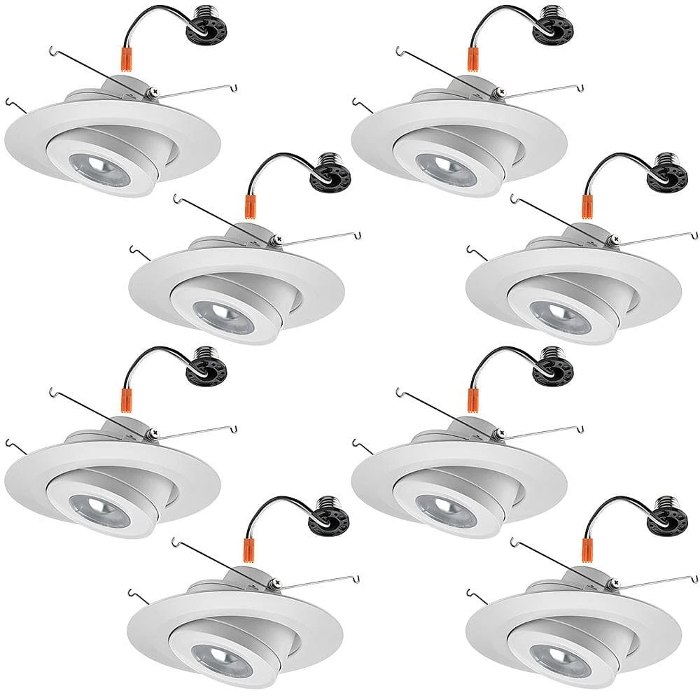 Commercial Electric’s 6 in. LED Gimbal Recessed Trim Light improves the quality of light the room due to being recessed into the ceiling. In addition, our Gimbal light provided you the ability to adjust the light to your specific needs with just the twist of the wrist. You can direct the light in the direction you prefer, as well as the width of the light from narrow to wide. Emits 670 Lumens of brightness using only 8-Watt of electricity. Illuminates 3000K Soft White color temperature of light output and is dimmable. Ideal applications are showcasing artwork, photographs, fireplace mantel, sports memorabilia, kitchen desks, reading area and general home lighting.