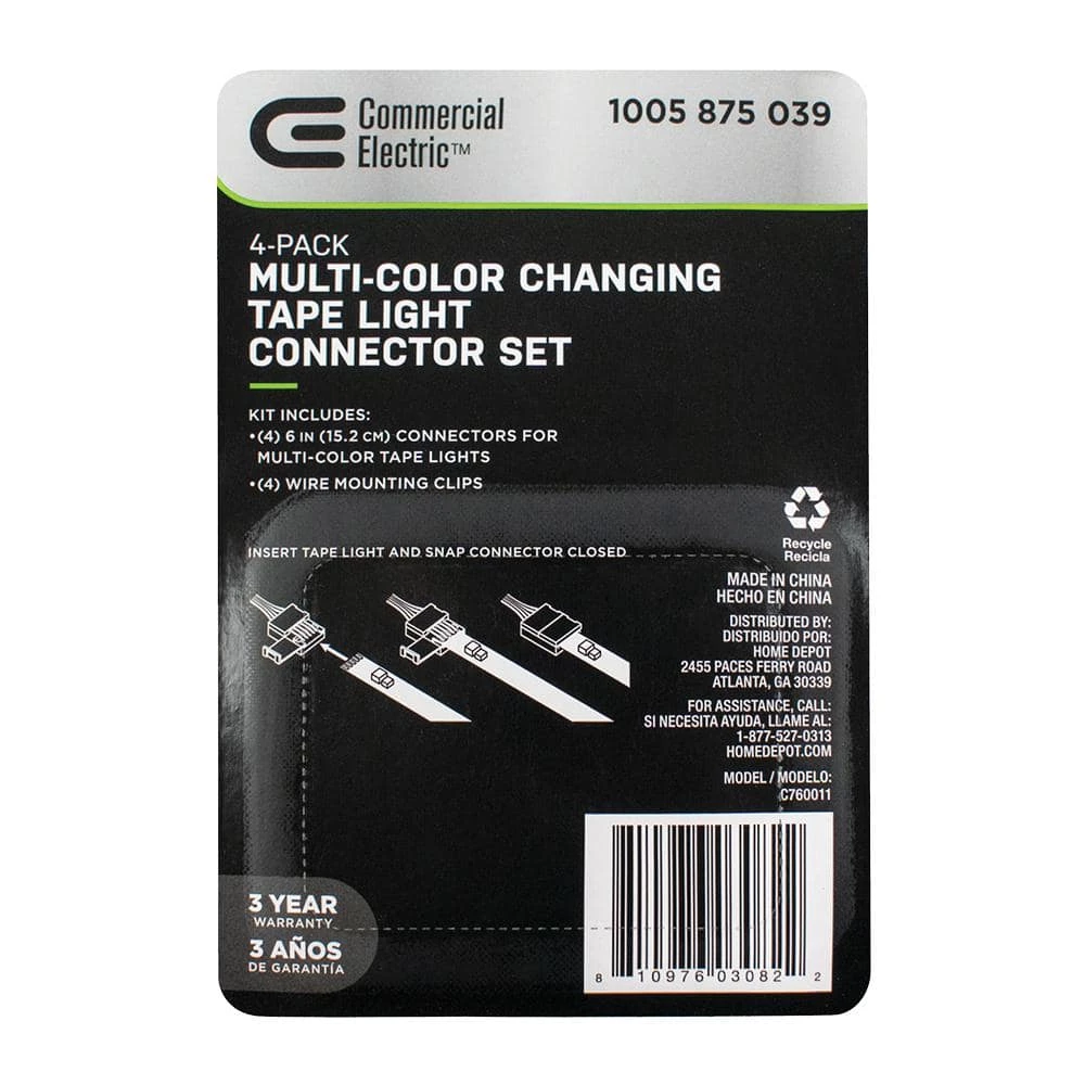 Customize multi-color plus white tape light installation. This set enables short jumps and turns in under cabinet and other LED strip light applications. Compatible with all CE color plus tape light. Connector set includes 4 x 6 in. snap connectors and 4 wire mounting clips. Perfect for under cabinet LED strip lights.