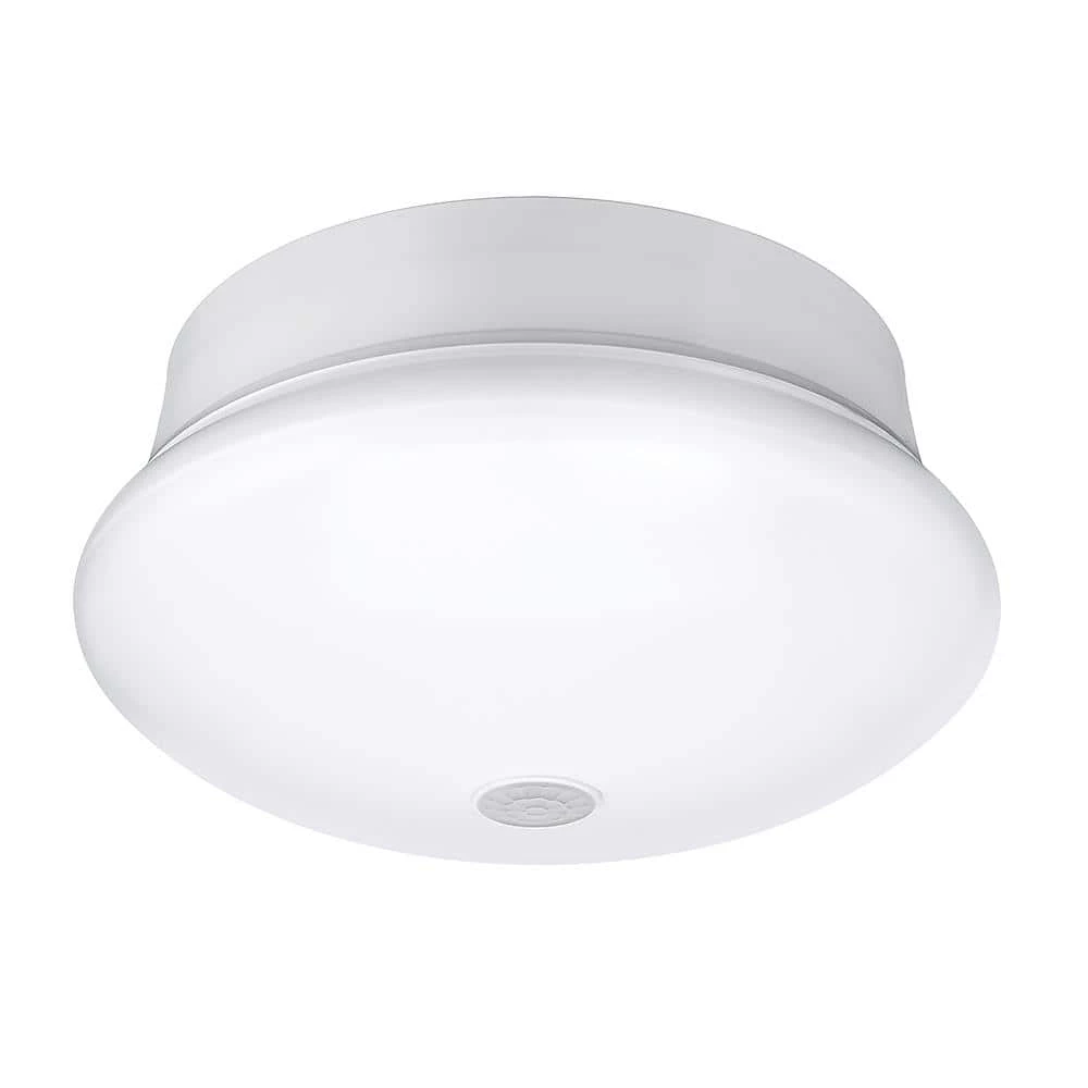 Commercial Electric 7in. Spin Light with Motion Sensor LED Flush Mount ceiling light converts bare lamp holder into an energy-efficient LED fixture just like a light bulb. It is designed to screw into most existing plastic and porcelain lamp holders without any wiring required. (Direct wire option is included). This light replaces a 60-Watt incandescent bulb; saving energy, the environment and your wallet. Prior to installation, choose motion sensor hold times and since this light detects motion up to 8.5 feet, this eliminates the hassle of feeling around for the wall switch or pull cord when entering a room especially when your hands are full. With its long-lasting light engine, this Spin Light is maintenance free with absolutely no bulbs to replace. Ideal for closets, garage, pantry, laundry room, hallway, stairway and landing, basement or other dark areas.