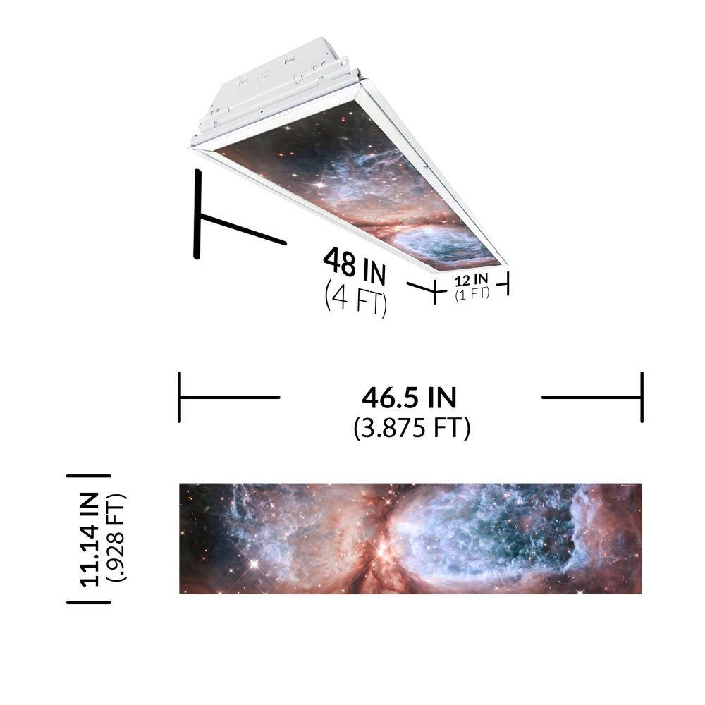 • ?UNIVERSAL 1×4 FIT? Octo Lights’ decorative astronomy light covers seamlessly fit any standard 1×4 fluorescent ceiling diffuser. The actual size of each panel measures, 11.187″ x 46.5″