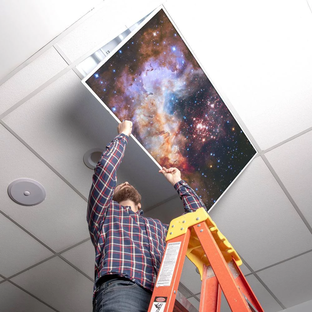 Octo Lights- Fluorescent Light Covers: Reduce harsh fluorescent glares and escape the indoors without leaving your desk or cubicle. Whether at home, in school, or at the office, liven up any fluorescent lighting system with the Octo Lights’ astronomy design light filters to make every day feel like you’re stargazing or sojourning through the stars! Made with top quality materials and featuring high-resolution photo prints the Octo Lights astronomy light covers are designed to enhance any space you choose to install. By removing the harsh glares from the fluorescent lights, your living and workspace will be transformed into one of other-worldly serenity. Octo Lights Features and Benefits: Lightweight and Flexible, Eco-Friendly, Self-Extinguishing Material, Easy Installation and Exchange, UL Certified, Safe for All Environments, Available in Backlit Film for Traditional Fluorescent Lighting Systems. Perfect For: Homes, Classrooms, Offices, Workshops, Hospitals, And More! About Octo Lights: As leaders of the lighting industry, we take pride in offering high quality astronomy fluorescent light covers that are easy on the pocket. Our experts use high-resolution images to develop flawless interstellar ceiling tiles. You can rest assured that you’ll be paying for top-notch light products in the market.