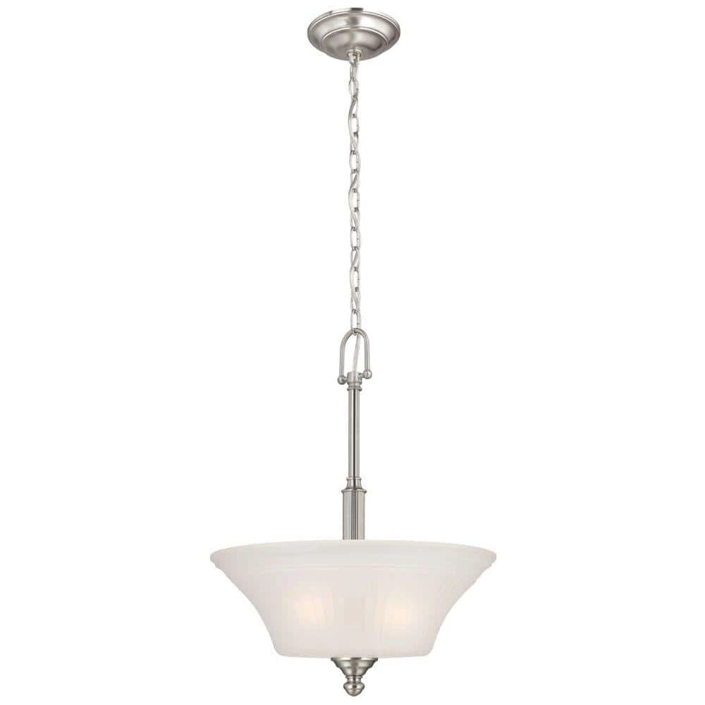The 3-light pendant is beautifully crafted in a restoration look of yester year. Finished in brushed nickel, it will be a great additional to any room. It has a frosted glass shade to provide pure illumination. This unique pendant is the choice of discriminating yet value conscious homeowners who want to enrich their home.
