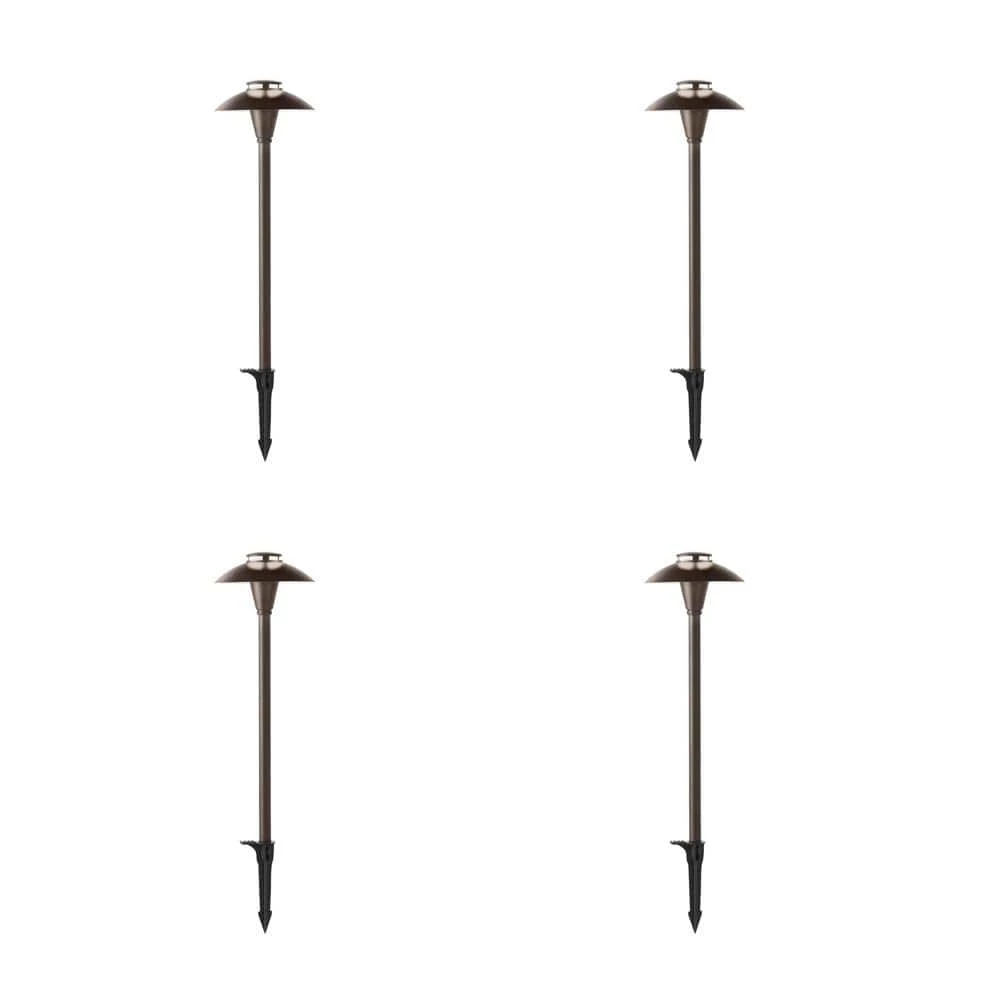 Each identical path light in this pack of 4 provides the same bright light as a typical halogen landscape light, but uses over 80% less energy. Each path light is supplied with a 3-Watt replaceable MR-11 LED light bulb. Top-quality professional spec features include cast-aluminum 1 piece post construction, a long-life powder-coat finish, weatherproof electronics, and a quick-install wire connector. Do-it-yourself installation is fast, easy, and safe. This fixture’s light is directed toward the ground, creating a soft light that can illuminate steps, pathways and smaller plants, offering a valuable outdoor security feature for your home.