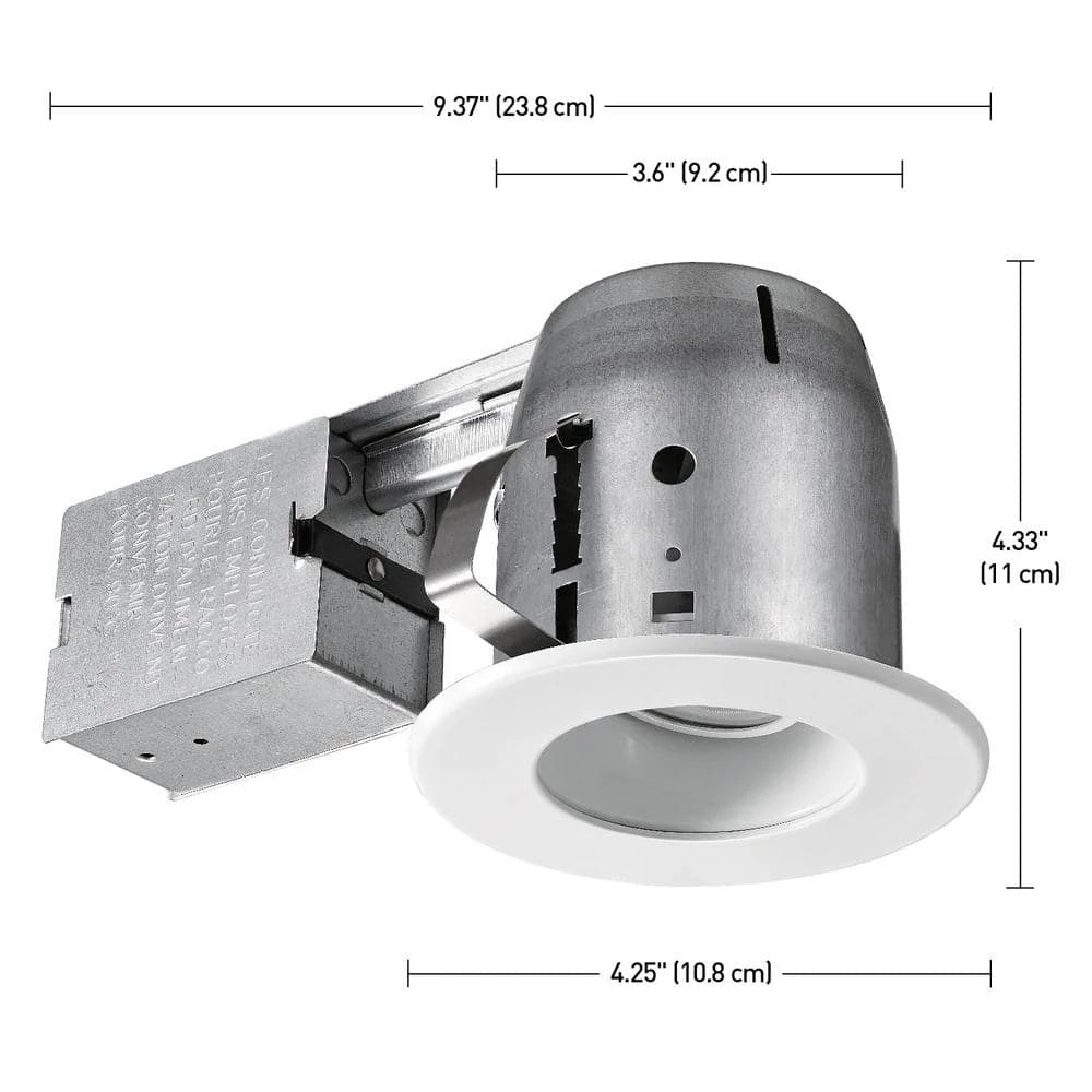 Globe Electric’s 4 in. LED IC Rated Swivel Baffle Round Trim Recessed Lighting Kit with a white finish is the perfect way to brighten up the interior of your home or commerce with style. The included LED bulbs turn your recessed lighting eco-friendly green. Featuring patented PUSH-N-CLICK clips which are fully adjustable and extra wide to grip uneven surfaces and provide easy tool-free installation. A swivel light bulb gives you the ability to focus light on specific areas while a smooth baffle provides the perfect glare control, perfect for people who wear glasses. An integrated thermal cut-off switch ensures that the fixture will not overheat and can be used with or without an insulation box. Includes one 6.5-Watt GU10 bi-pin base MR16 Title 20 & 24 California Compliant ENERGY STAR Certified LED light bulb. Dimmable with compatible dimmer switch (not included). Cut a 3.88 in. hole for this item. Actual decorative trim size is 5.5 in.