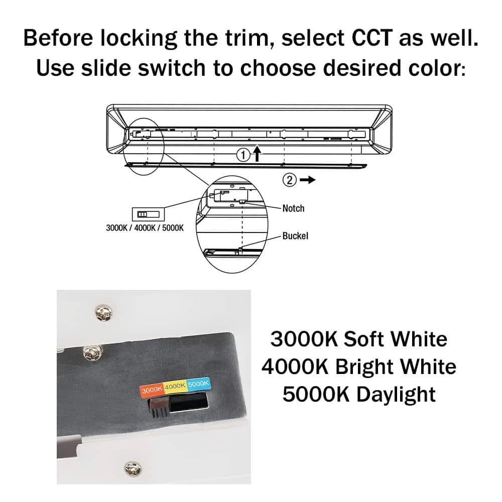 - Color temperature options: 3000K Soft White, 4000K Bright White, 5000K Daylight