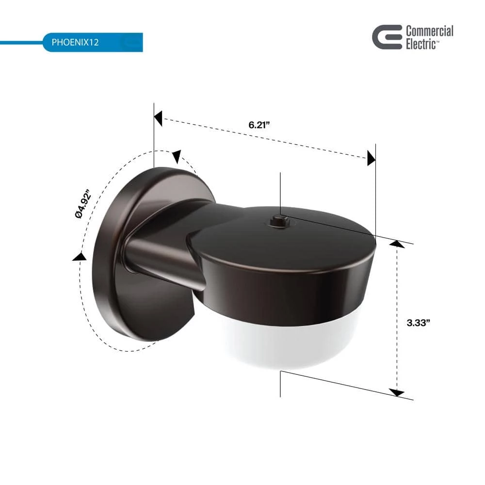 The ideal security solution for an entryway or patio, these 4 sleek wall packs shine 900 Lumens of neighbor-friendly warm white light each using only 12-Watt. The fixtures’ UV-stabilized polycarbonate lenses prevent hot-spots and glare when mounted on a wall or column. Installation is easy and hands-free. Set the dusk to dawn photocell technology to automatically turn the lights on at sunset and off when the sun comes up. The weather-resistant aluminum housings are rugged enough to stand up to the elements for more than 50,000 hours of maintenance-free use, while the energy-efficient LEDd will save you $160 a year on utility bills long beyond Commercial Electric’s 5-year warranty.