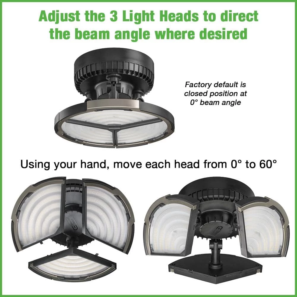 - 3 independent light heads where user adjusts the beam angle to the desired direction from 0° to 60°