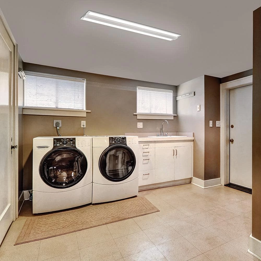 Commercial Electric’s Ultra Low Profile 4 ft. Integrated LED Wrap Light an innovative, sleek and Contemporary fixture designed for spaces with low ceiling to floor clearance eliminating the bulky aesthetics with conventional fixtures. Installation is effortless due to the center face panel is removable for easy wiring. It emits crystal clear 3200 Lumens of brightness using only 42-Watts of electricity. Color temperature of light output is 4000K Bright White and dimmable. This wrap light provides cool emissions with energy-efficient LED technology and is maintenance free with no bulbs to replace. Ideal applications such as kitchen, bathrooms, large closets, stairways, hallways, laundry room, basement, garage, workshop or craft room.