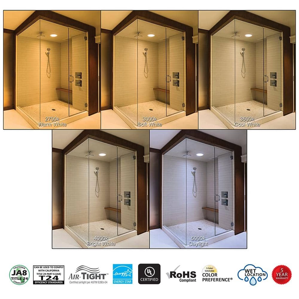 - Color temperatures options: 2700K Warm White, 3000K Soft White, 3500K Cool White, 4000K Bright White or 5000K Daylight