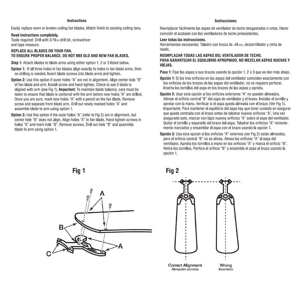 Maintain the performance of your indoor ceiling fan with these Reversible White/Antique finish Replacement Fan Blades. Compatible with most 42 in. ceiling fans, this 5-pack features reversible White/Antique finishes to coordinate with your fan. Restore balance and update the look of your indoor fan by replacing all the fan blades on your ceiling fan with this set. Blades have pre-drilled holes for easy installation, also includes instructions to custom fit if needed.